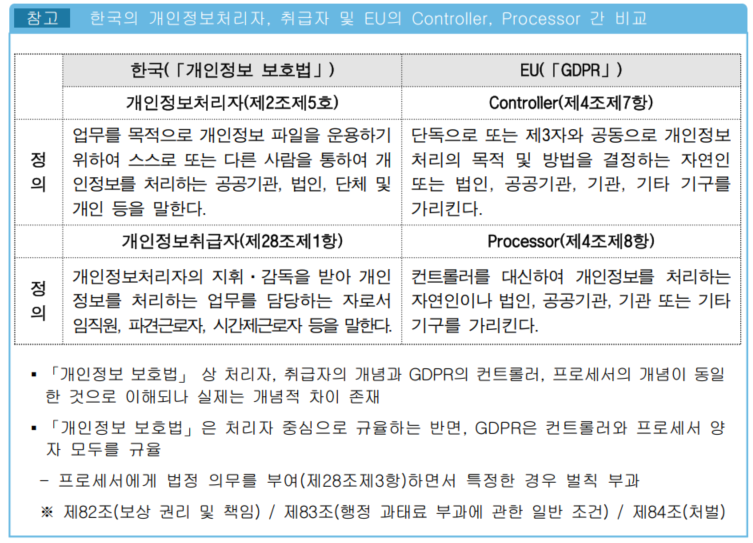 - 개인정보처리자는 '개인정보취급자'와 구분 됨
